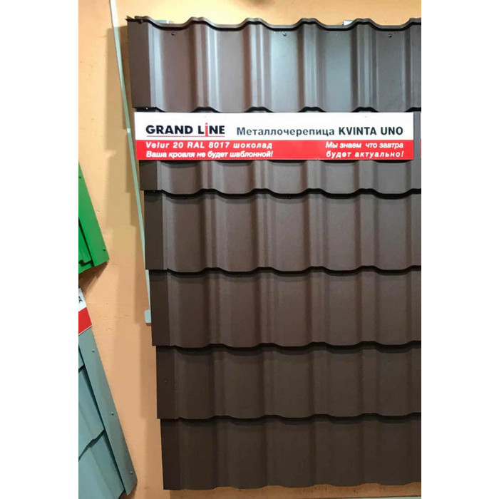 Металлочерепица Grand Line Kvinta Uno (Квинта Уно) 0,5 Velur RAL 8017 Шоколад