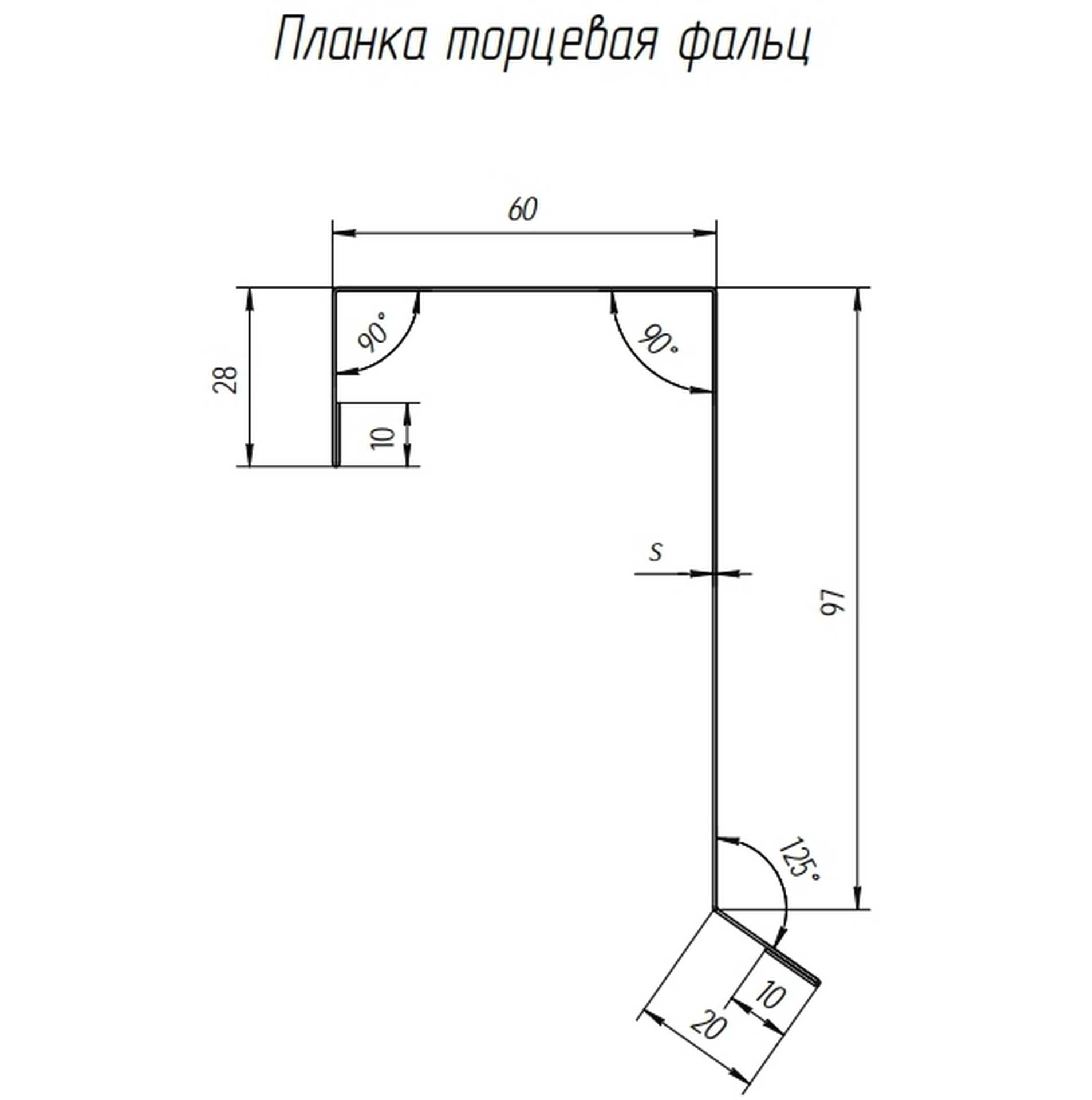 Планка торцевая фальц 60х97 0,5 PurLite Мatt RAL 9005 черный