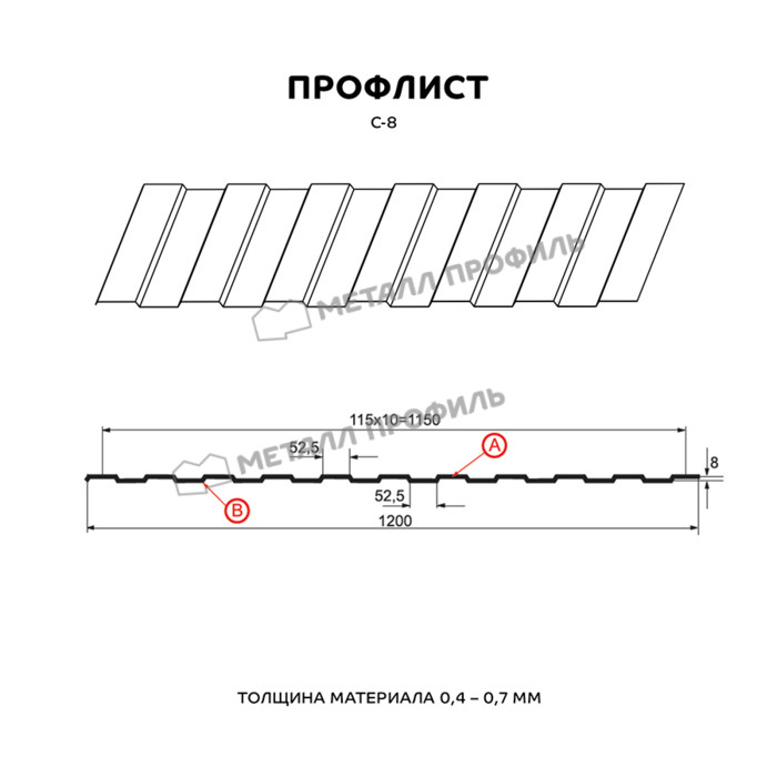 Профлист Металл Профиль С-8 0,5 NormanMP RAL 8004 Коричневая медь | A