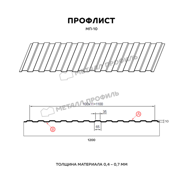 Профлист Металл Профиль МП-10 0,5 NormanMP RAL 1015 Светлая слоновая кость | B