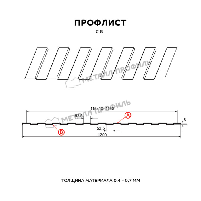 Профлист Металл Профиль С-8 0,7 Полиэстер RAL 1015 Светлая слоновая кость | B
