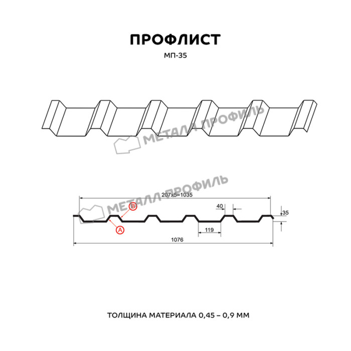 Профлист Металл-Профиль МП-35 NormanMP 0.5 мм RAL 1015 Светлая слоновая кость
