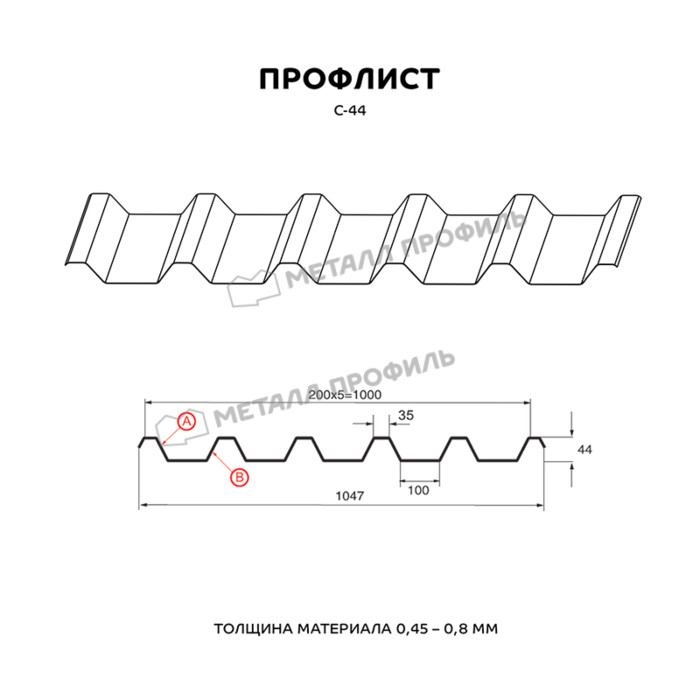 Профлист Металл-Профиль С-44 NormanMP 0.5 мм RAL 8004 Коричневая медь