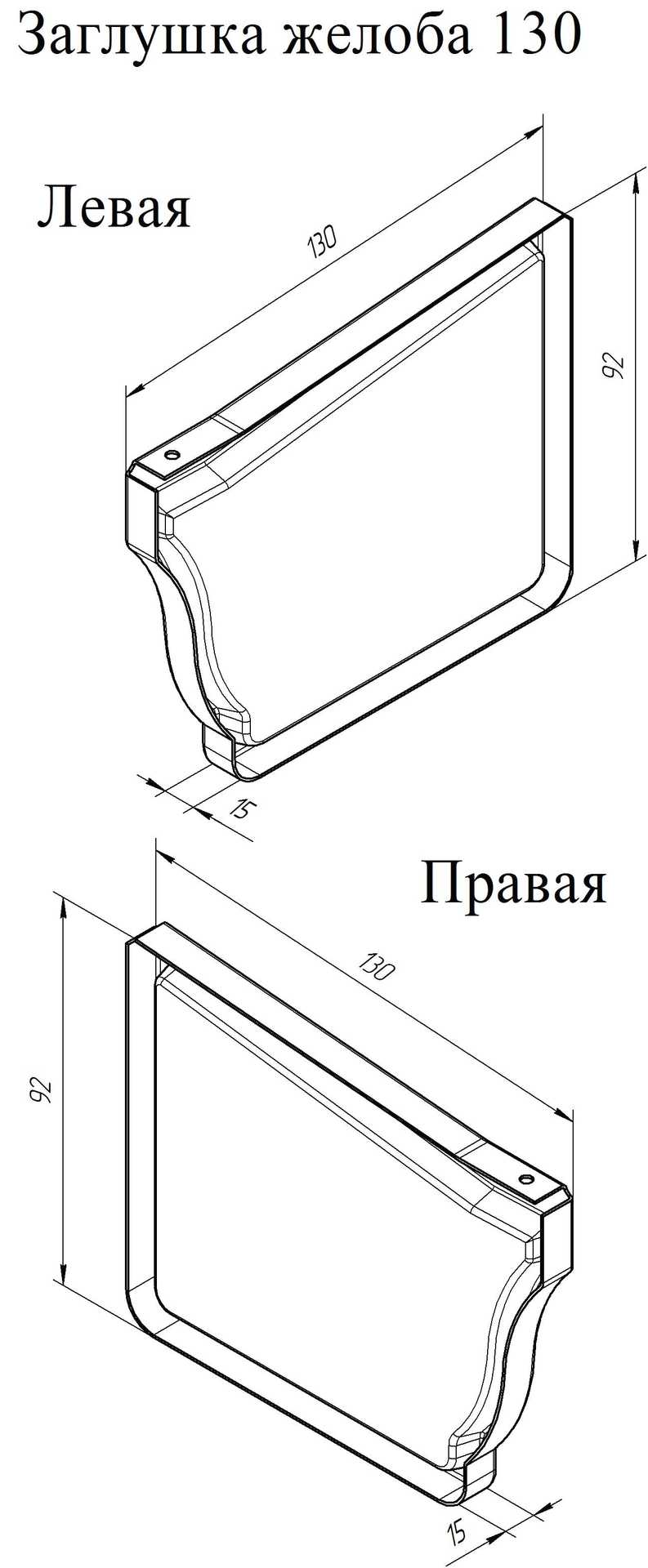 Устанавливается на торцах желоба. Конструкция обеспечивает постоянную фиксацию, герметичность и жесткость желоба.